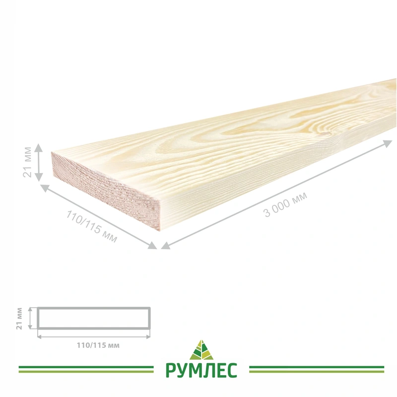 Строганая доска камерной сушки сечением 21*110/115 мм имеет четкую геометрию и широко применяется при изготовлении декоративных решеток, мебели, наличников, забора, для отделки стен.