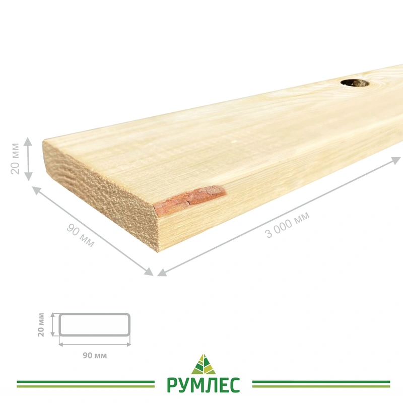 Строганая доска камерной сушки сечением 20*90 мм имеет четкую геометрию и широко применяется при изготовлении декоративных решеток, мебели, наличников, забора.