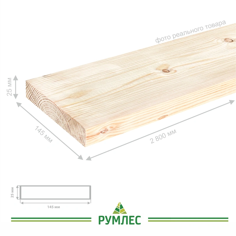 Строганая доска камерной сушки сечением 25*145 мм имеет четкую геометрию и широко применяется при изготовлении мебели, заборов, наличников и отделке стен.