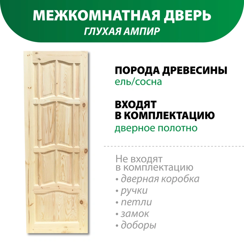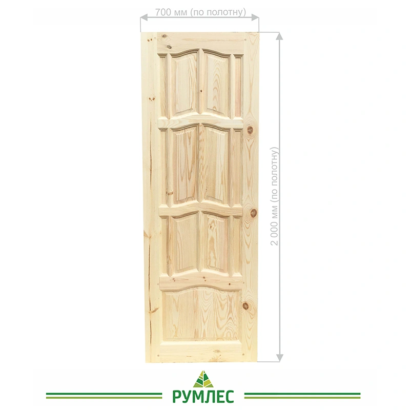 Полотно выполнено из цельного массива, что делает конструкцию более прочной и устойчивой к нагрузкам. Дизайн с глухим полотном и фигурными филенками гармонично впишется в любой интерьер и подчеркнет уют вашего дома.