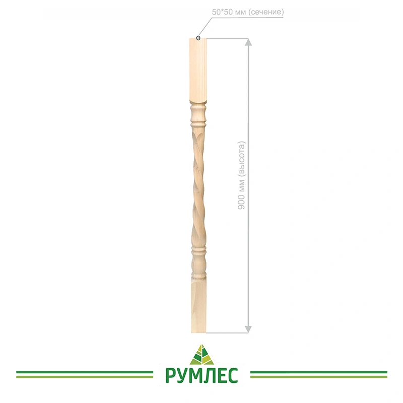 Балясина №11 сорта Экстра из сосны имеет опору квадратной формы размерами 50*50 мм. Высота балясины 900 мм.
