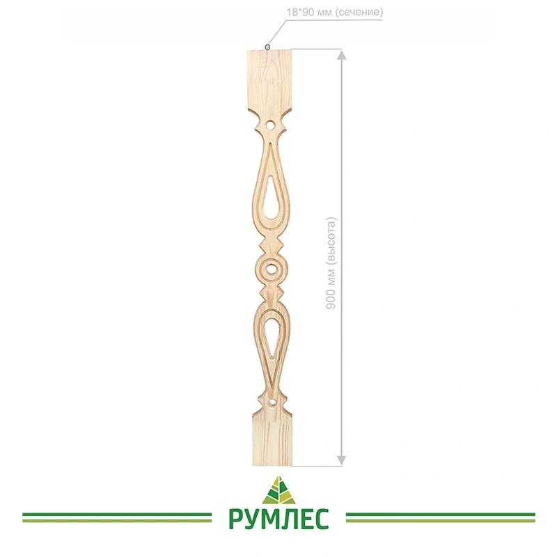 Плоская балясина №3 сорта Экстра из сосны имеет опору размерами 18*90 мм. Высота изделия 900 мм.