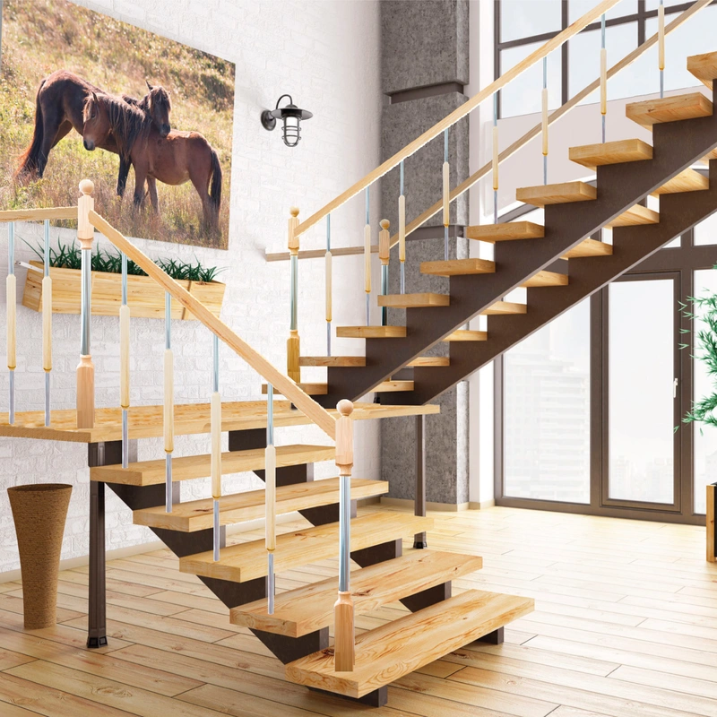 Комбинированная балясина сочетает надежность металла и природную красоту дерева. Она идеально подходит для создания ограждений лестниц и балконов, обеспечивая безопасность и долгий срок службы конструкции.