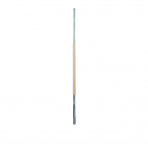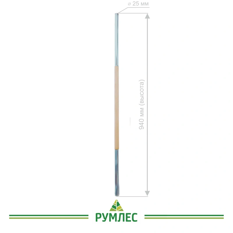 Комбинированная балясина состоит из хромированной трубы Ø 25мм и деревянного элемента из сосны. Снизу балясина крепится с помощью фланца, сверху к поручню — на специальное крепление.