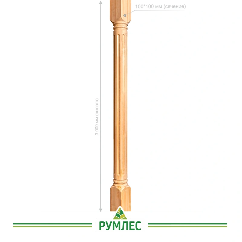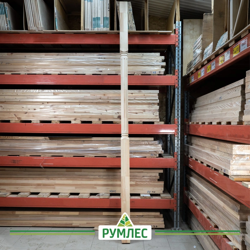 Колонна №8 сорта Экстра из сосны имеет опору квадратной формы размерами 100*100 мм. Высота колонны 3000 мм. Материал хранится на закрытом, хорошо проветриваемом складе.