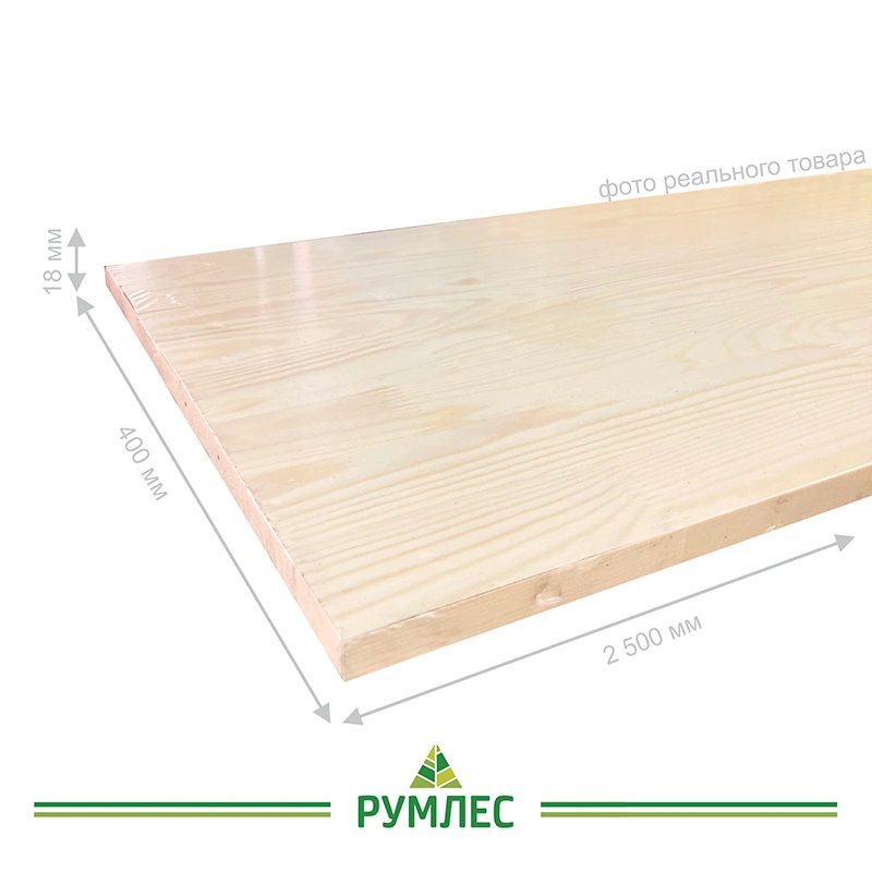 Сращенный мебельный щит сорта Экстра с размерами 18*400*2500 мм изготовлен из сосны. Материал хранится на хорошо проветриваемом складе в индивидуальной упаковке производителя.