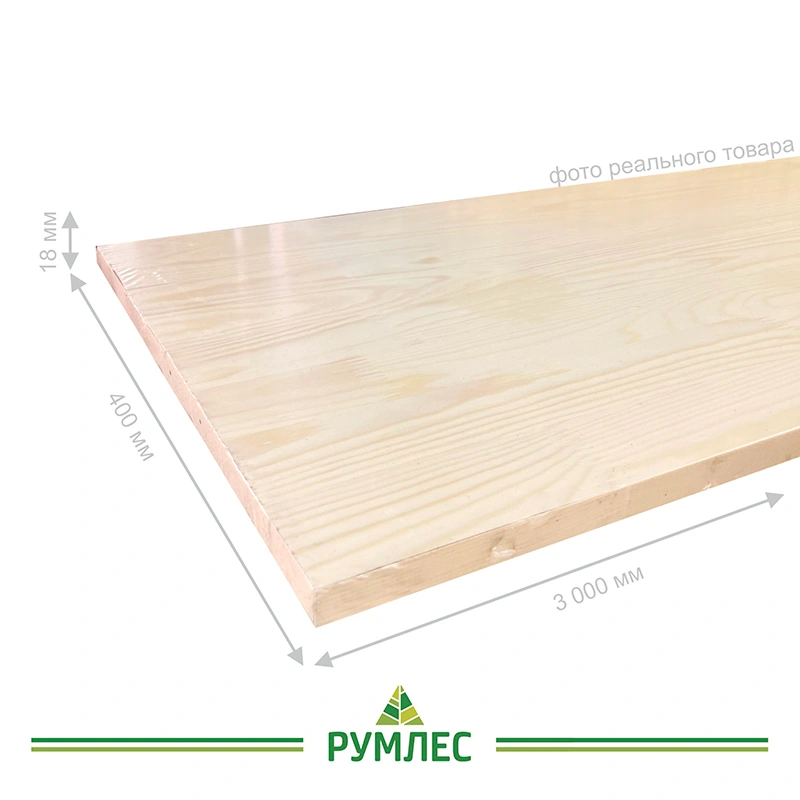 Сращенный мебельный щит сорта Экстра с размерами 18*400*3000 мм изготовлен из сосны. Материал хранится на хорошо проветриваемом складе в индивидуальной упаковке производителя.