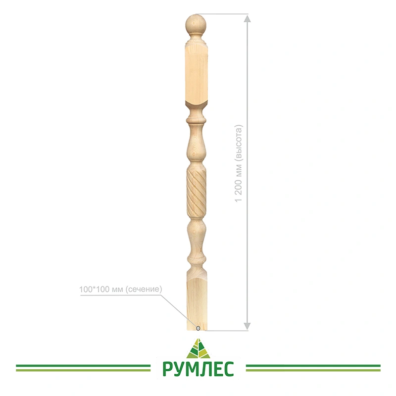 Начальный столб №9 сорта Экстра размерами 100*100*1200 мм выполнен из сосны. Материал хранится на закрытом, хорошо проветриваемом складе.