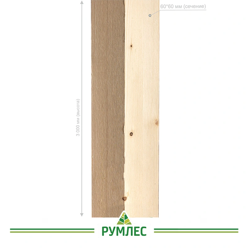 Клееный опорный столб сорта АВ сечением 60*60 мм и высотой 3000 мм выполнен из хвойных пород древесины. Материал хранится на закрытом, хорошо проветриваемом складе.