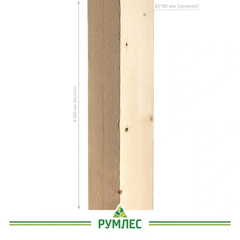 Клееный опорный столб сорта АВ сечением 80*80 мм и высотой 2000 мм выполнен из хвойных пород древесины. Материал хранится на закрытом, хорошо проветриваемом складе.