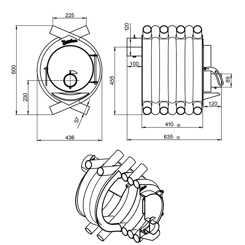 Печь отопительная Везувий АОГТ 00 предназначена для обогрева бытовых нежилых и промышленных помещений объёмом до 100 м³.