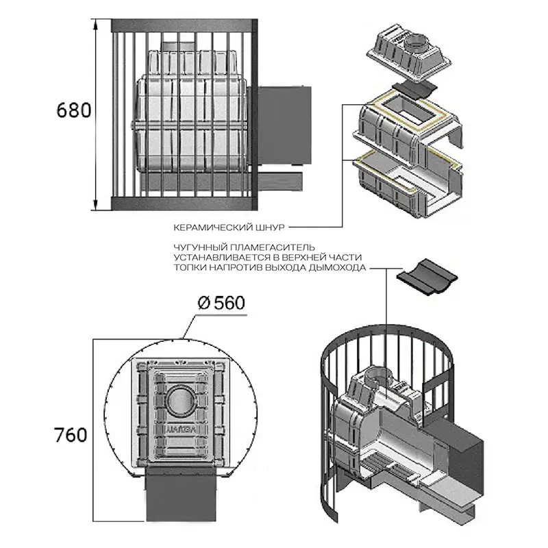 - Печь из высококачественного жаростойкого чугуна выдерживает высокие тепловые нагрузки и не деформируется.