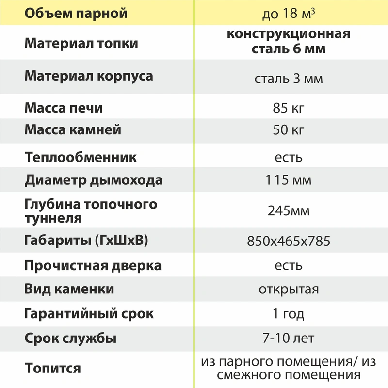 Банная печь «Протопи Согрей 18ТС» рассчитана на парные объемом до 18 м3.
