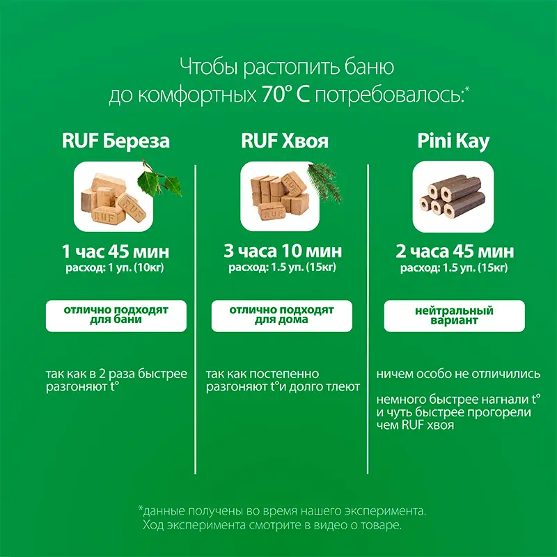 Мы провели эксперимент и сравнили 3 вида топливных брикетов RUF береза, RUF хвоя, Pini Kay. Из видео узнаете, какие брикеты дают больше жара и быстрее нагревают помещение, какие горят дольше.