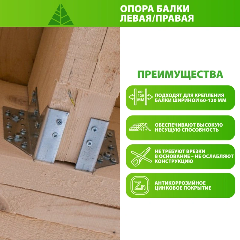 Для крепления деревянных балок любой ширины к деревянной, кирпичной, бетонной стене