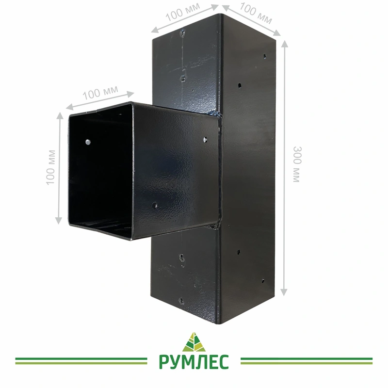 Коннектор «Тройник» Т-образный предназначен для соединения бруса сечением 100*100 мм в трех направлениях в одной плоскости.