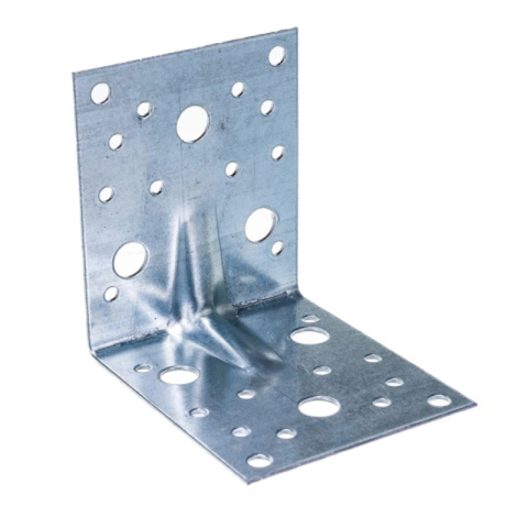 Уголок крепежный усиленный предназначен для соединения несущих деревянных конструкций. В отличие от обычного уголка, усиленный имеет специальную выштамповку — ребро жесткости. Благодаря этому крепеж выдерживает большие весовые нагрузки.