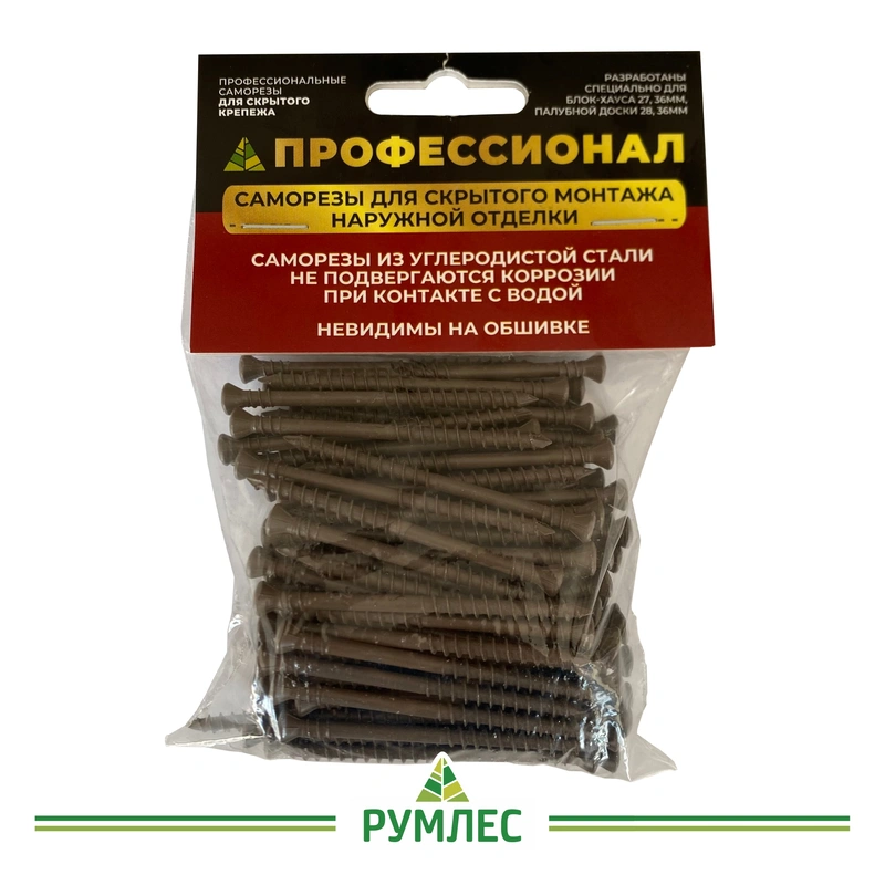 Саморезы ПРОФЕССИОНАЛ из углеродистой стали с покрытием Русперт 1000 предназначены для монтажа фасадных досок.