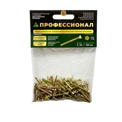 Саморезы Профессионал предназначены для скрытого монтажа вагонки, имитации бруса, блок-хауса, доски пола и других материалов из древесины. Продуманная конструкция крепежа дает ряд преимуществ:
