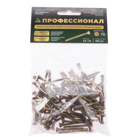 Саморезы Профессионал предназначены для скрытого монтажа вагонки, имитации бруса, блок-хауса, доски пола и других материалов из древесины. Продуманная конструкция крепежа дает ряд преимуществ:
