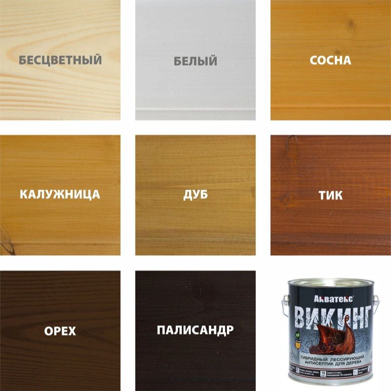 Акватекс Викинг — лессирующий антисептик для дерева. Состав предназначен для наружных и внутренних работ по любым поверхностям на основе древесины.