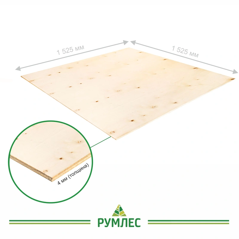 Фанера толщиной 4 мм сорта 4/4 применяется для обшивки стен и потолков под дальнейшую отделку, в качестве задней стенки корпусной мебели, а также для создания упаковки и тары.