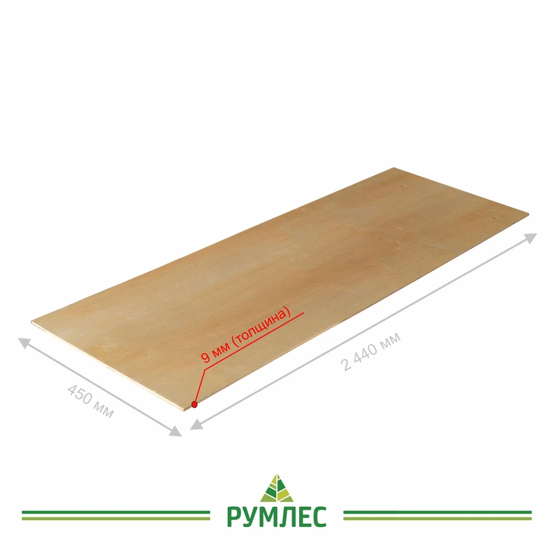 Фанера ФСФ Полоса 9*450*2440мм сорт 2/3 шлифованная/без сучков на лицевой стороне