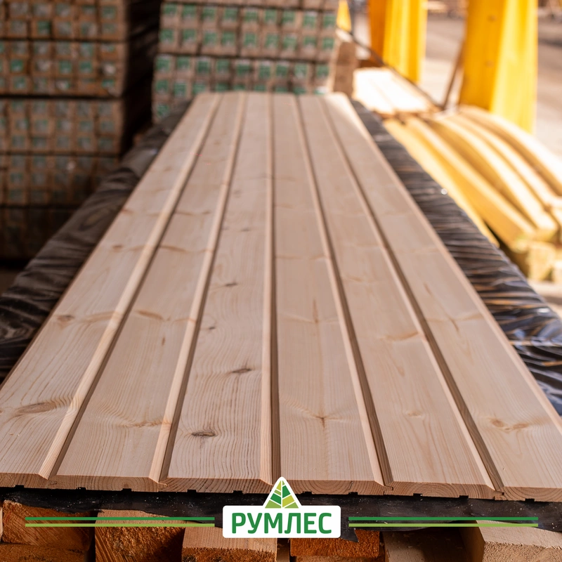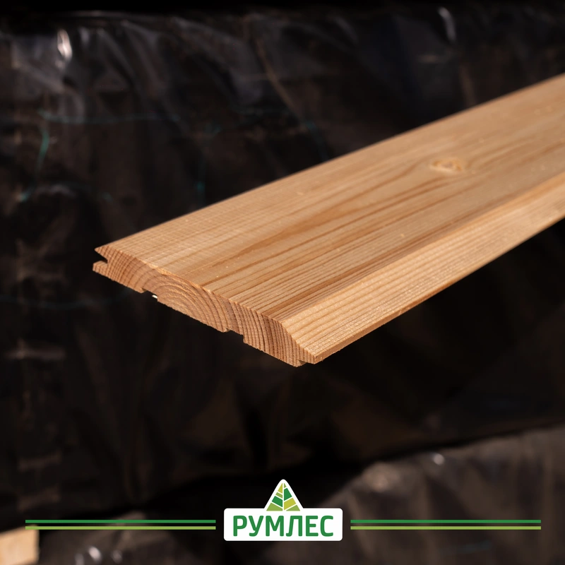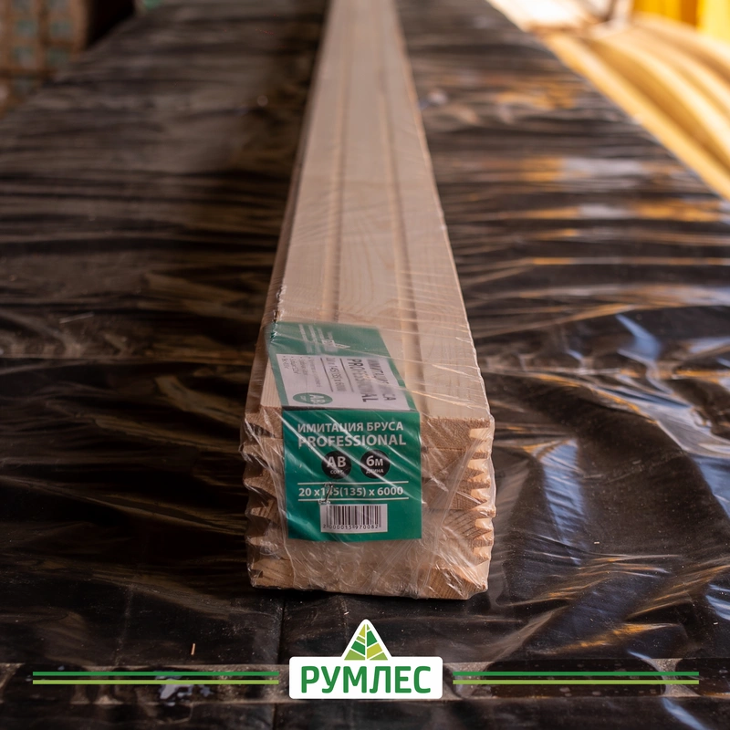 Имитация бруса — это строганый пиломатериал, прошедший камерную сушку. Он имеет низкий уровень влажности — 12-16%, а значит, даст минимальную усадку после монтажа.
