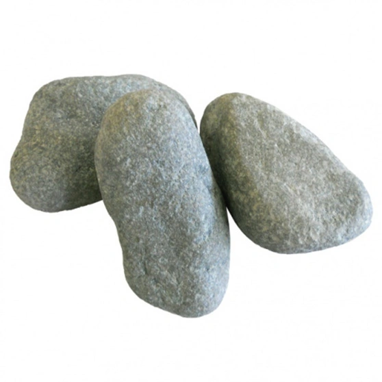 У обвалованного камня округлые формы, благодаря чему он эстетично смотрится вверху открытой каменки, а также удобно укладывается в электрокаменку.