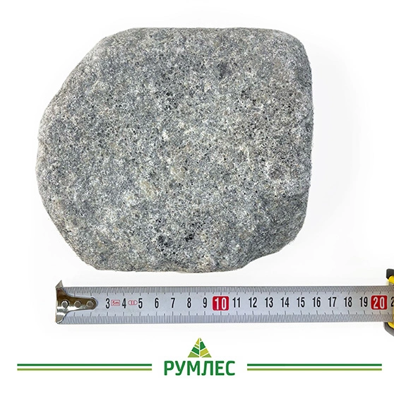 У обвалованного камня округлые формы, благодаря чему он эстетично смотрится вверху открытой каменки.