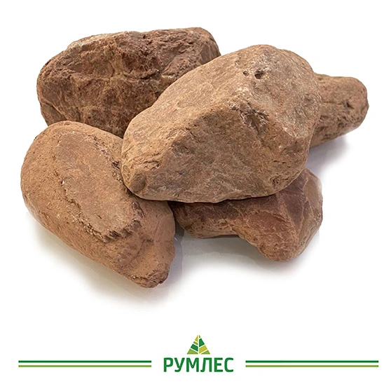 У обвалованного камня округлые формы, благодаря чему он эстетично смотрится вверху открытой каменки.